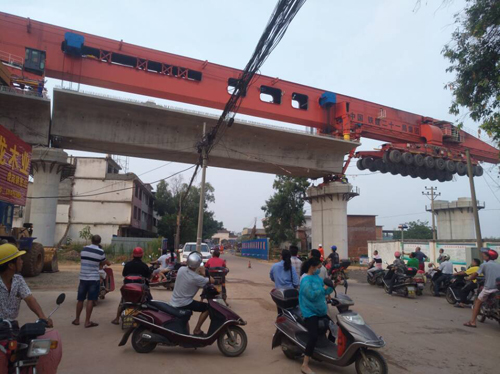 2.2017年8月15日7點(diǎn)28分,通聯(lián)科技900噸無導(dǎo)梁運(yùn)架一體機(jī)成功完成昌贛鐵路贛江特大橋第6孔箱梁跨道路架梁工作。