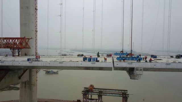 近日,通聯(lián)科技600噸跨纜吊機(jī)成功完成虎門(mén)二橋世界最寬鋼箱梁吊裝,虎門(mén)二橋大沙水道大橋勝利合龍?;㈤T(mén)二橋位于珠三角核心區(qū)域,連接珠江口東西兩岸的廣州南沙和東莞沙田,由兩座千米級(jí)懸索橋組成。其中,大沙水道橋?yàn)橹骺鐝?200米的雙塔單跨懸索橋,大橋主塔高191米;...